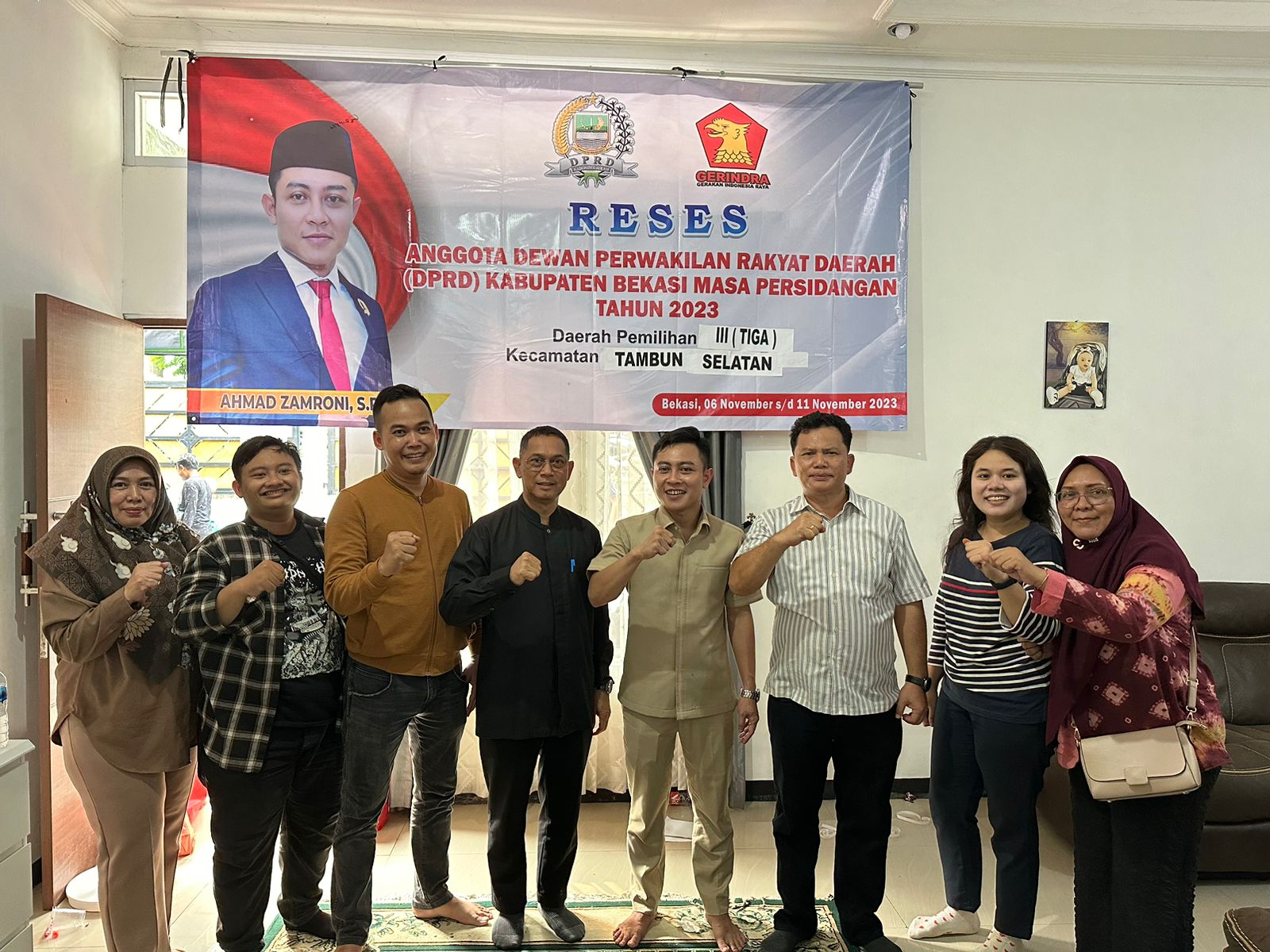 Dakanews- Anggota Komisi IV DPRD Kabupaten Bekasi, Ahmad Zamroni melakukan reses masa sidang kedua tahun 2023 di Tambun Selatan. Reses ini dilakukan untuk menjaring aspirasi dari para konstituennya. Sehingga apa yang menjadi masukan bisa disampaikan oleh para wakil rakyat ke pihak eksekutif.